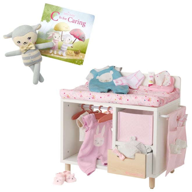 Once bath time is over bring your baby doll over to the nursing station put on her diaper lotion and pajamas and shes all set for her bedtime story. Wipe and spot clean as needed some parts may be hand washed For children ages three and up adult assembly required Manufacturers 30 Day Limited. This is a comprehensive list of all accessories and accessory sets released by Pleasant Company and American Girl for the Bitty Baby line.