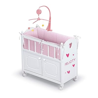 Buy Badger Basket Cabinet Doll Crib With Gingham Bedding Musical Mobile Wheels And Free Personalization Kit Fits American Girl Dolls White Gingham 01721 Online In Poland B0001x2xe2
